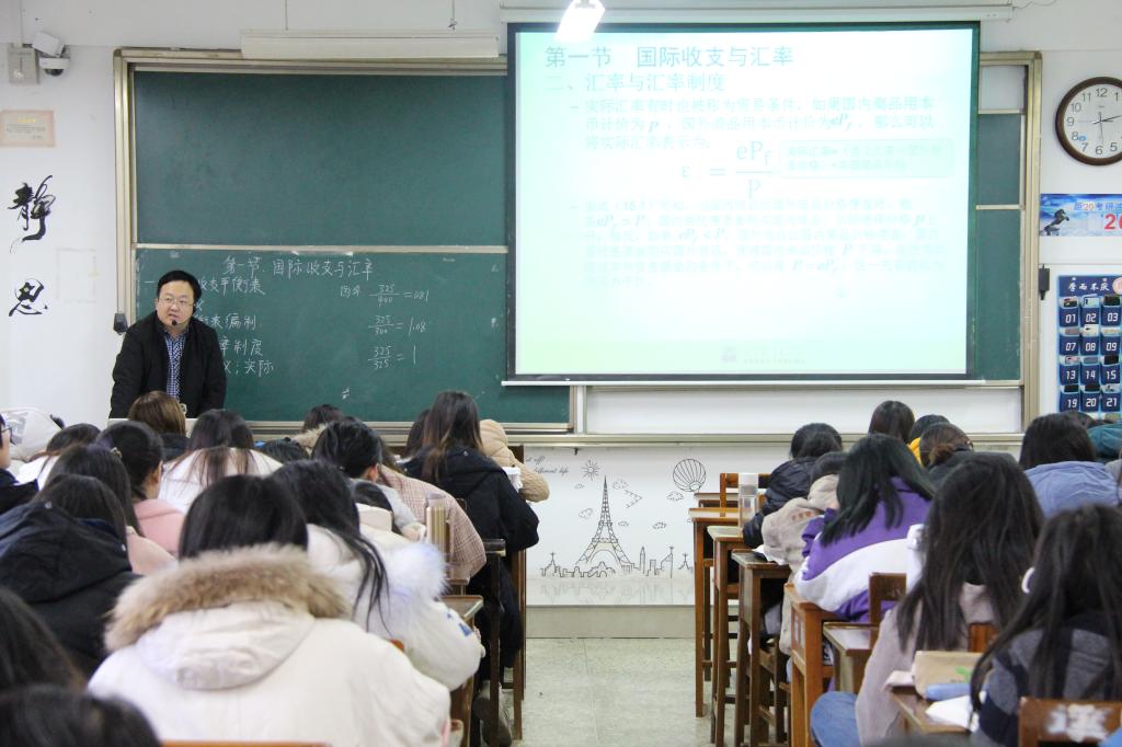 课堂伊始,张军伟老师条理清晰地列出了本堂课的知识框架,凭借充分的备课过程和扎实的专业基础,思路清晰、条理分明地讲解了国际收支平衡与汇率制度等方面的知识,通过列举国际上的真实案例来帮助同学们加深理解,有利于同学们对知识的整体把握。张老师积极与同学们进行交流互动,鼓励同学们表达出自己的观点,课堂充满生机活力。
