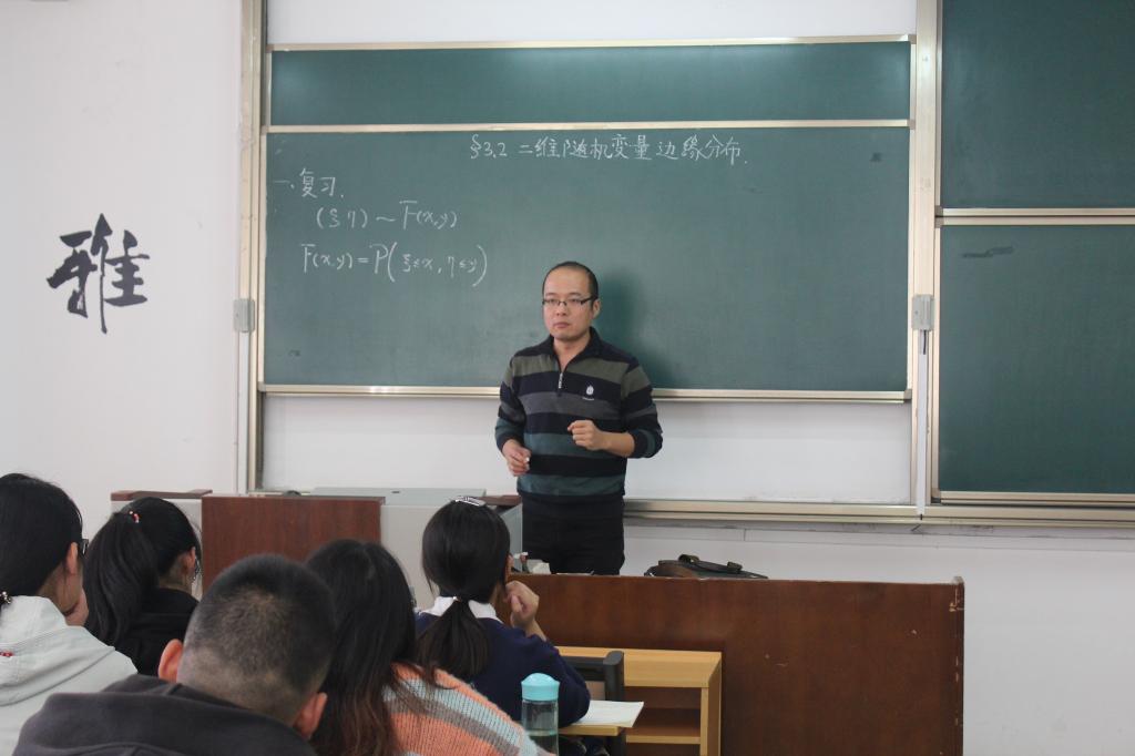10月23日下午14:00,邵伟老师在JC108举行海角社区 青年教师公开课第八讲。本次课程的内容是《二维随机变量的分布及密度函数》。邵老师的课堂无需修饰,简单明了。黑板上的板书整齐,重点突出,思路清晰,同学们听得专心致志。传统的课堂模式与邵老师的投入相结合,使教学回归本真状态,更高效地完成了知识的传递。