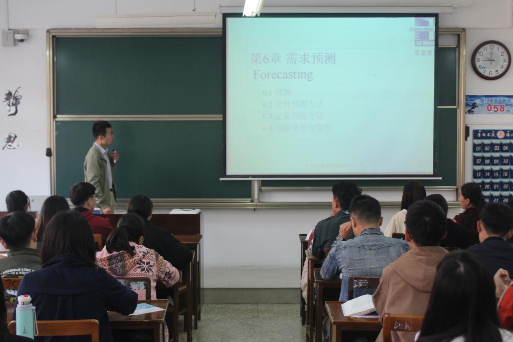 10月27日9:00,王成飞老师于JC103举行海角社区 青年教师公开课第九讲——《生产运作管理-需求预测》。课堂初始,王成飞老师以常见现象为导入点,引入课堂内容。在课堂上,王老师积极与学生互动,同学们也积极响应。在提问过程中,同学们积极思考,踊跃发言,课堂气氛十分活跃。在王老师的课堂上,学生是课堂的主体,这种以学生为主的教学方式让同学们更容易接受和掌握课堂内容,更好地汲取知识。