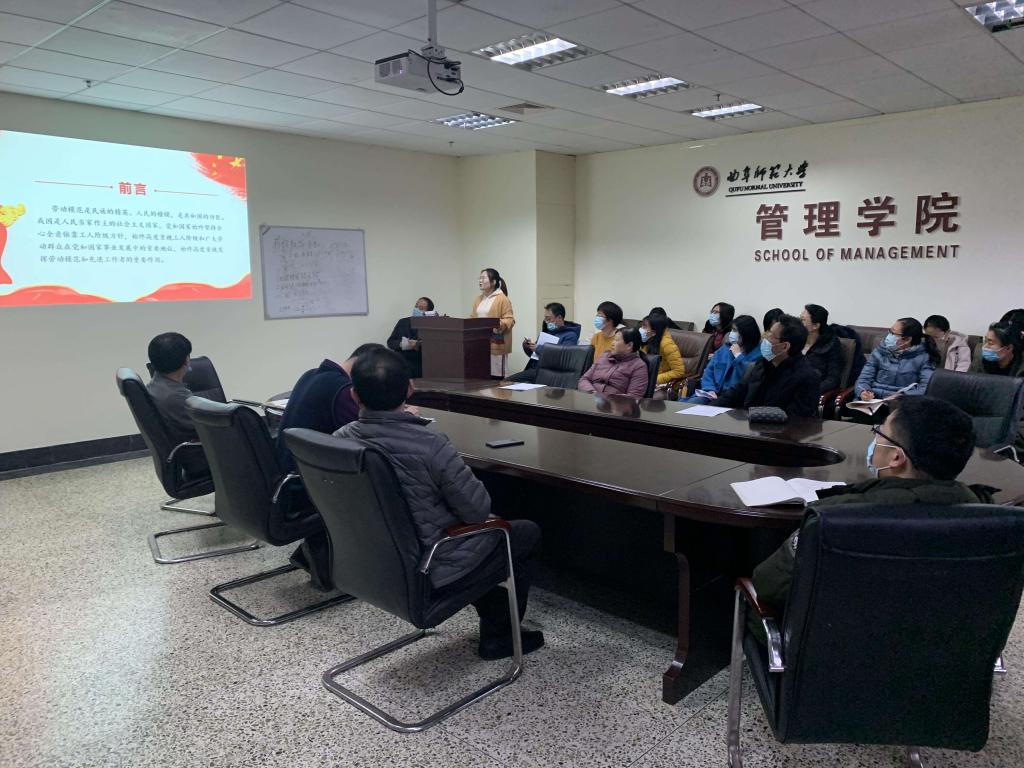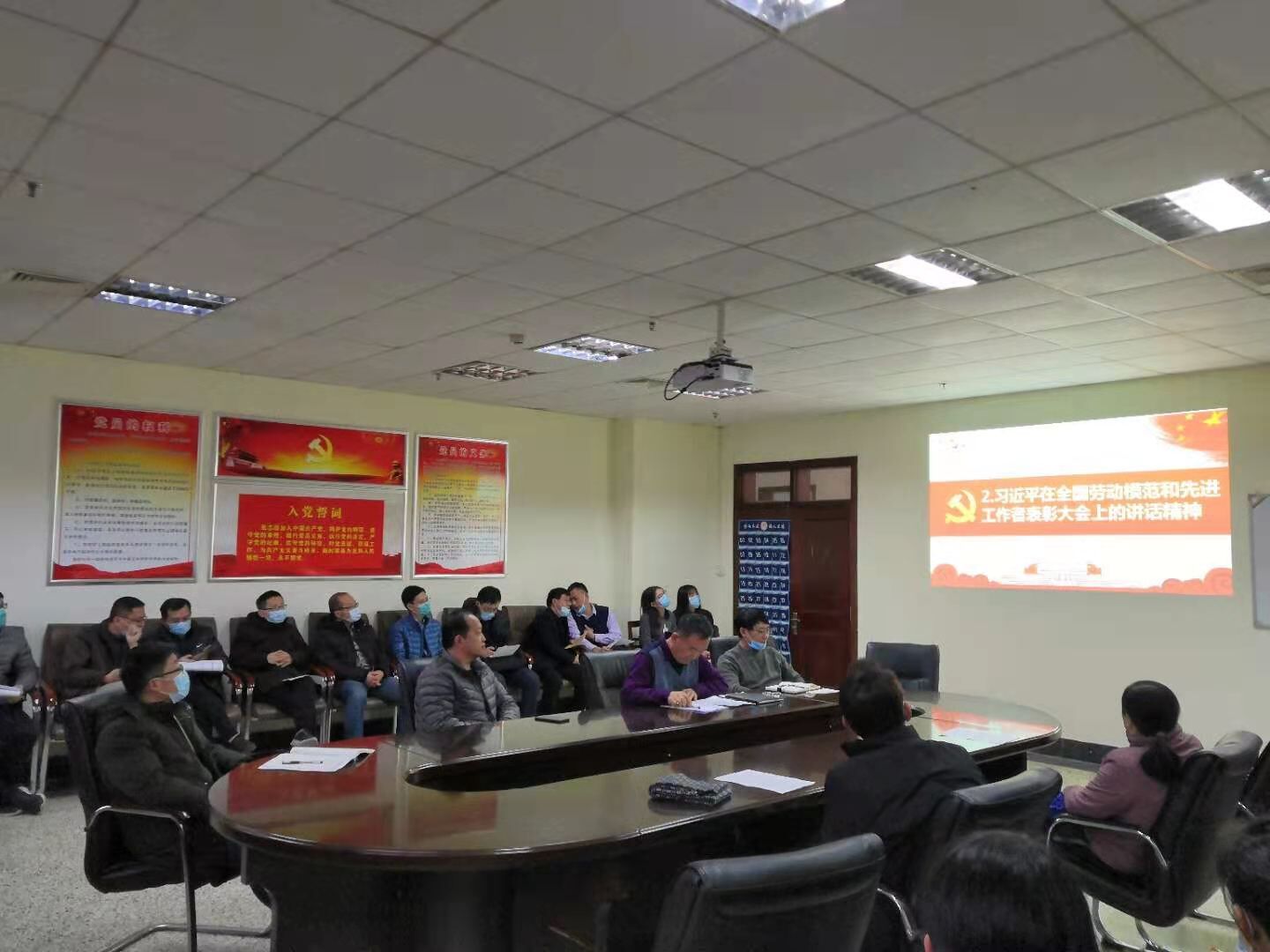 12月9日,海角社区 全体工会会员于JC819集中学习习近平总书记在全国劳动模范和先进工作者表彰大会上的重要讲话。会议学院分工会主席王琳主持